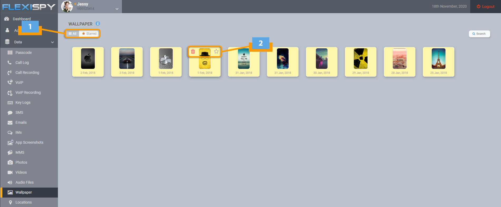 This is where you can see a history of the device's Wallpaper. There are two main areas as follows Wallpaper List View Gallery View Wallpaper List View View a history of wallpapers that the device has set Gallery View Tapping on a wallpaper opens the ...